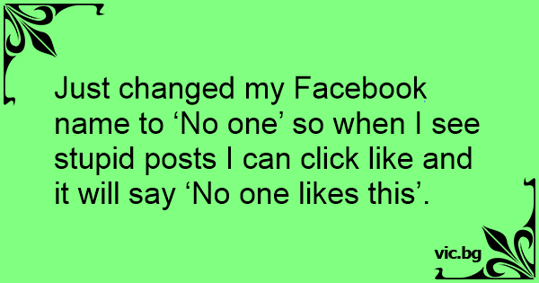 Just changed my Facebook name to ‘No one’ so when I see sтuрid posts I can click like and it will say ‘No one likes this’.