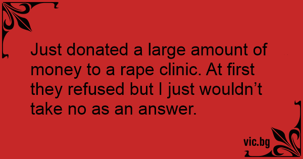 Just donated a large amount of money to a rаре clinic. At first they refused but I just wouldn’t take no as an answer.