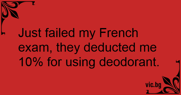 Just failed my French exam, they deducted me 10% for using deodorant.