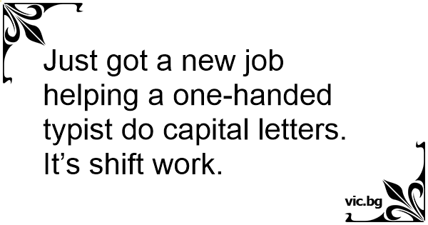 Just got a new job helping a one-handed typist do capital letters. It’s shift work.