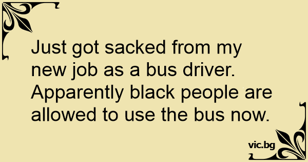 Just got sacked from my new job as a bus driver. Apparently black people are allowed to use the bus now.