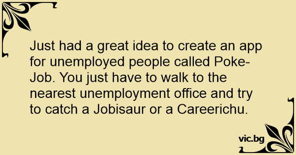 Just had a great idea to create an app for unemployed people called Poke-Job. You just have to walk to the nearest unemployment office and try to catch a Jobisaur or a Careerichu.