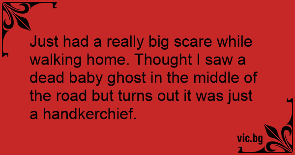 Just had a really big scare while walking home. Thought I saw a dead baby ghost in the middle of the road but turns out it was just a handkerchief.