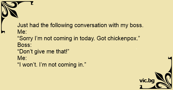 “Sorry I’m not coming in today. Got chickenpox.”