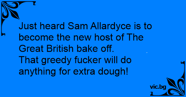 Just heard Sam Allardyce is to become the new host of The Great British bake off.