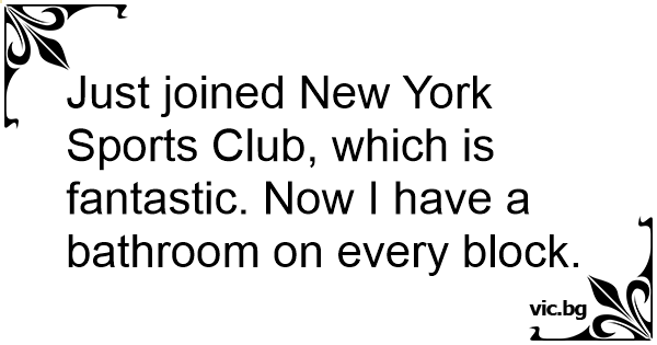 Just joined New York Sports Club, which is fantastic. Now I have a bathroom on every block.