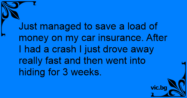 Just managed to save a load of money on my car insurance. After I had a crash I just drove away really fast and then went into hiding for 3 weeks.