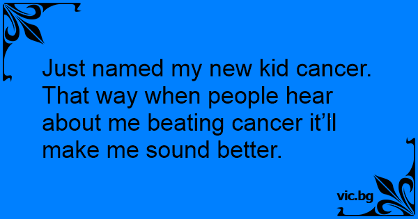 Just named my new kid cancer. That way when people hear about me beating cancer it’ll make me sound better.
