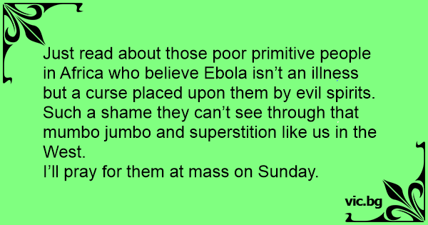 Just read about those poor primitive people in Africa who believe Ebola isn’t an illness but a curse placed upon them by evil spirits.