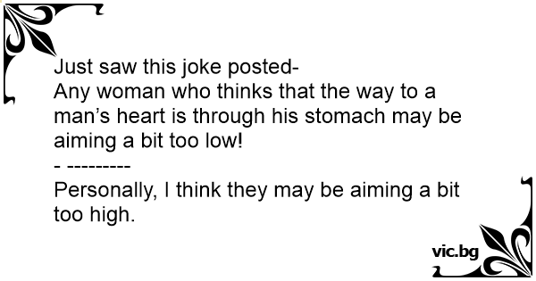 Any woman who thinks that the way to a man’s heart is through his stomach may be aiming a bit too low!