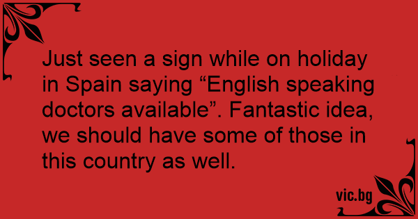 Just seen a sign while on holiday in Spain saying “English speaking doctors available”. Fantastic idea, we should have some of those in this country as well.