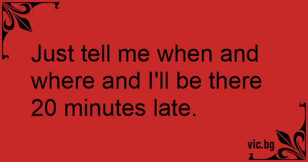 Just tell me when and where and I'll be there 20 minutes late.