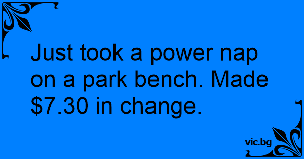 Just took a power nap on a park bench. Made $7.30 in change.