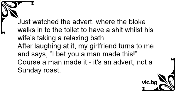 Just watched the advert, where the bloke walks in to the toilet to have a shiт whilst his wife’s taking a relaxing bath.