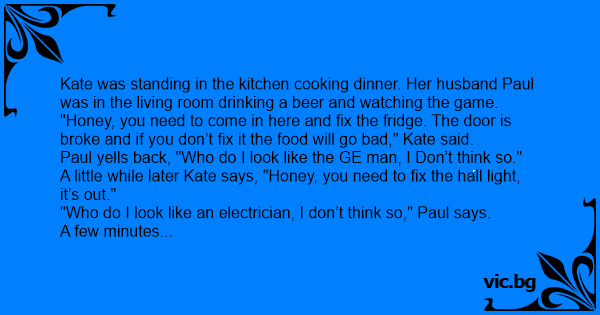 "Honey, you need to come in here and fix the fridge. The door is broke and if you don’t fix it the food will go bad," Kate said.