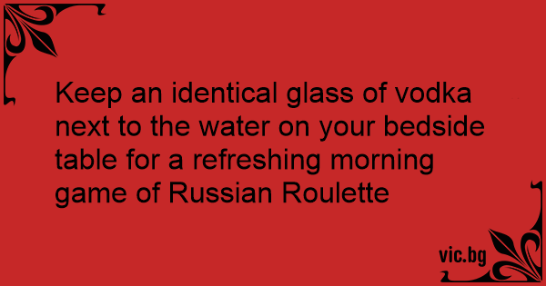 Keep an identical glass of vоdка next to the water on your bedside table for a refreshing morning game of Russian Roulette