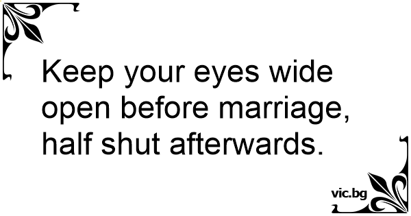 Keep your eyes wide open before marriage, half shut afterwards.