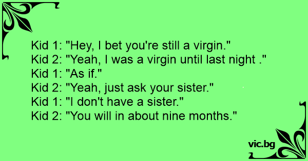 Kid 1: "Hey, I bet you're still a virgin."