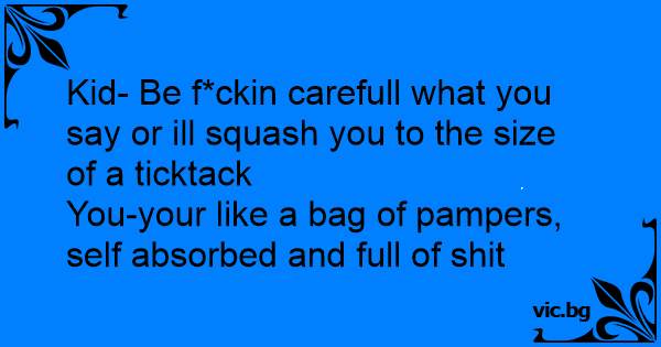 Kid- Be f*ckin carefull what you say or ill squash you to the size of a ticktack