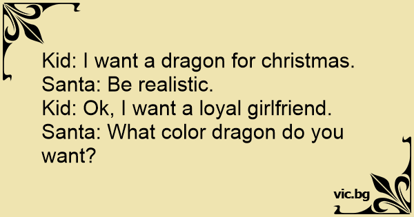 Kid: I want a dragon for christmas.