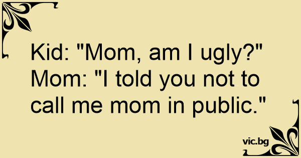 Kid: "Mom, am I ugly?"