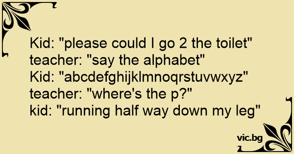 Kid: "please could I go 2 the toilet"