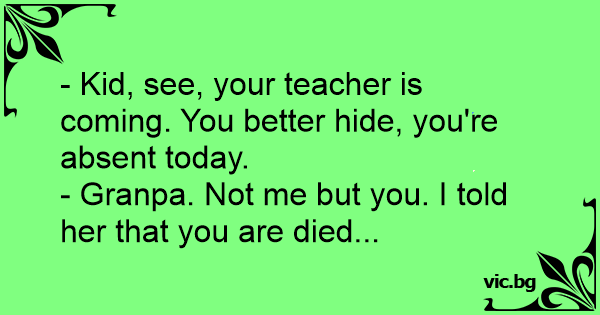 - Kid, see, your teacher is coming. You better hide, you're absent today.