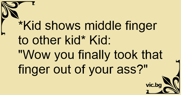 *Kid shows middle finger to other kid* Kid:
