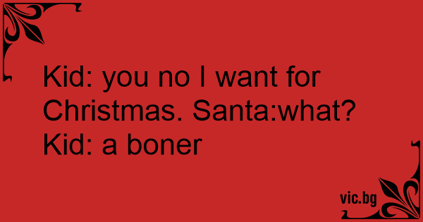 Kid: you no I want for Christmas. Santa:what? Kid: a boner