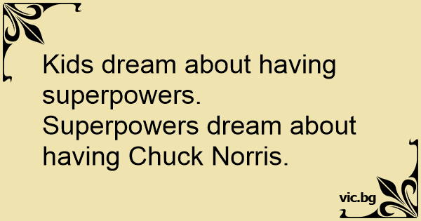 Kids dream about having superpowers.Superpowers dream about having Chuck Norris. 15 0 0 Kids Jokes Chuck Norris Jokes