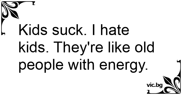 Kids suск. I hate kids. They're like old people with energy.