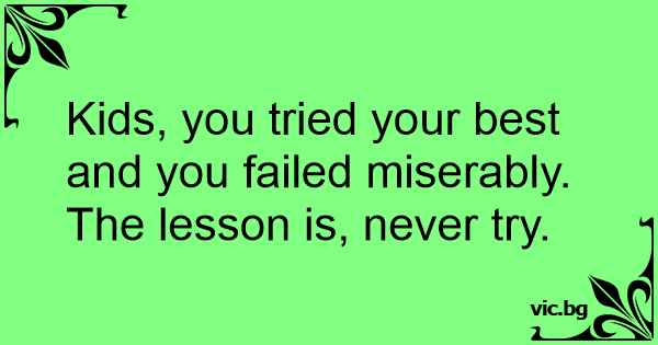 Kids, you tried your best and you failed miserably. The lesson is, never try.