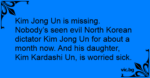 Kim Jong Un is missing. Nobody’s seen evil North Korean dictator Kim Jong Un for about a month now. And his daughter, Kim Kardashi Un, is worried sick.