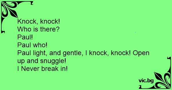 Paul light, and gentle, I knock, knock! Open up and snuggle!