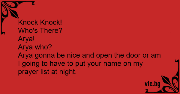 Arya gonna be nice and open the door or am I going to have to put your name on my prayer list at night.