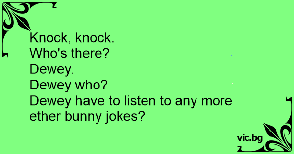 Dewey have to listen to any more ether bunny jokes?