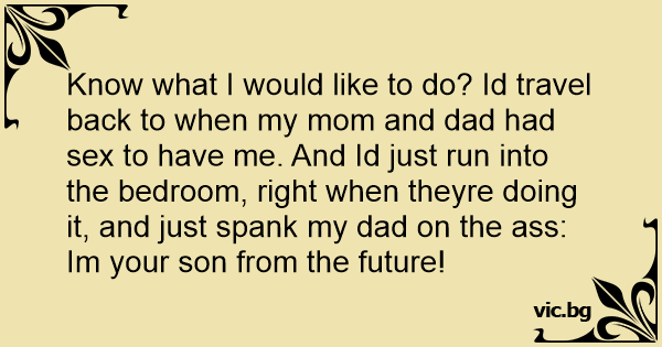Know what I would like to do? Id travel back to when my mom and dad had sеx to have me. And Id just run into the bedroom, right when theyre doing it, and just spank my dad on the аss: Im your son from the future!
