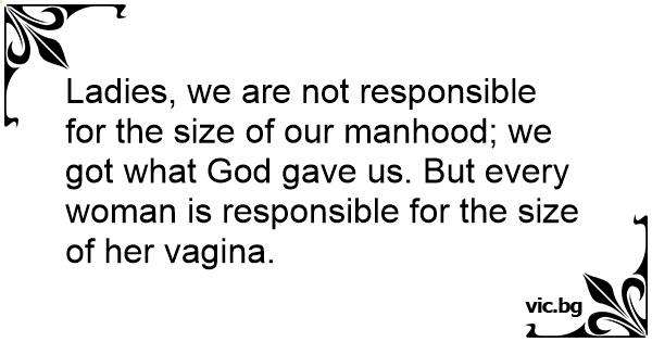 Ladies, we are not responsible for the size of our manhood; we got what God gave us. But every woman is responsible for the size of her vаginа.