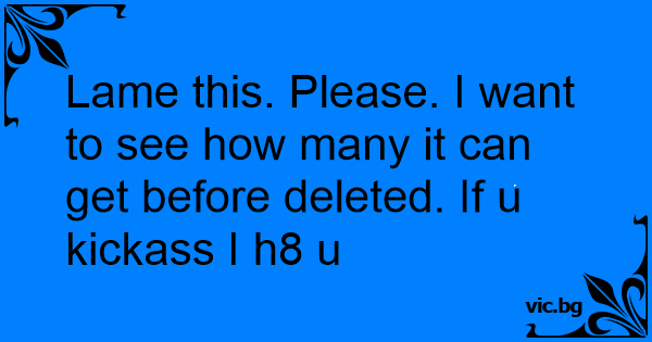 Lame this. Please. I want to see how many it can get before deleted. If u kickass I h8 u