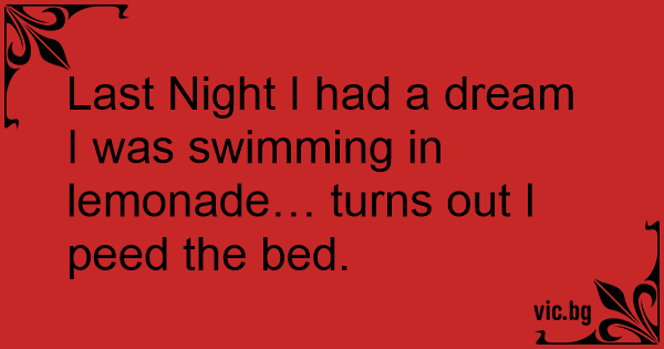 Last Night I had a dream I was swimming in lemonade… turns out I peed the bed.