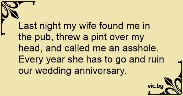 Last night my wife found me in the pub, threw a pint over my head, and called me an аsshоlе.