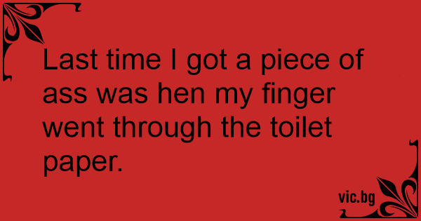Last time I got a piece of аss was hen my finger went through the toilet paper.