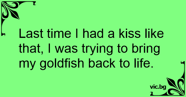 Last time I had a kiss like that, I was trying to bring my goldfish back to life.