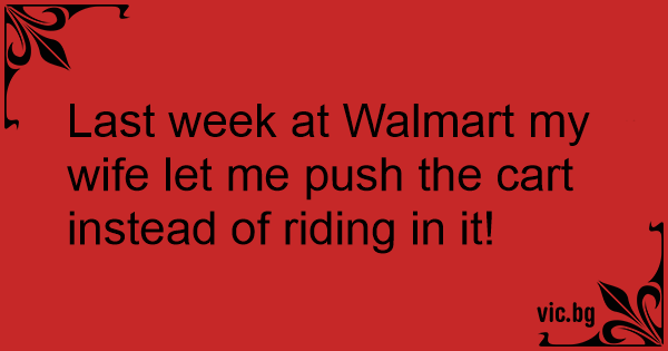 Last week at Walmart my wife let me push the cart instead of riding in it!
