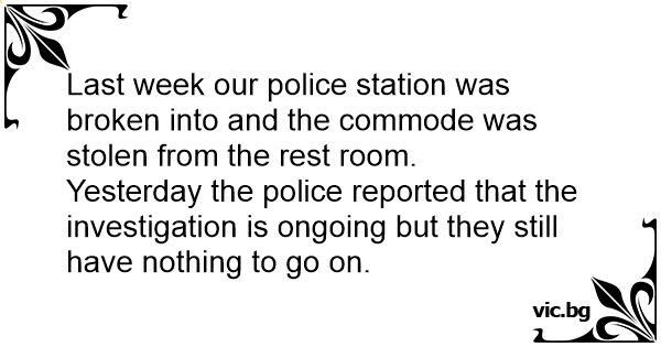 Last week our police station was broken into and the commode was stolen from the rest room.