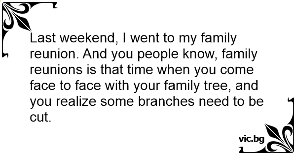 Last weekend, I went to my family reunion. And you people know, family reunions is that time when you come face to face with your family tree, and you realize some branches need to be cut.