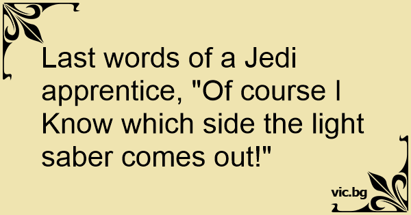 Last words of a Jedi apprentice, "Of course I