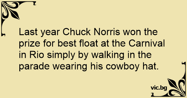 Last year Chuck Norris won the prize for best float at the Carnival in Rio simply by walking in the parade wearing his cowboy hat.
