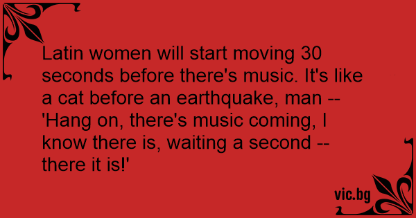 Latin women will start moving 30 seconds before there's music. It's like a cat before an earthquake, man -- 'Hang on, there's music coming, I know there is, waiting a second -- there it is!'