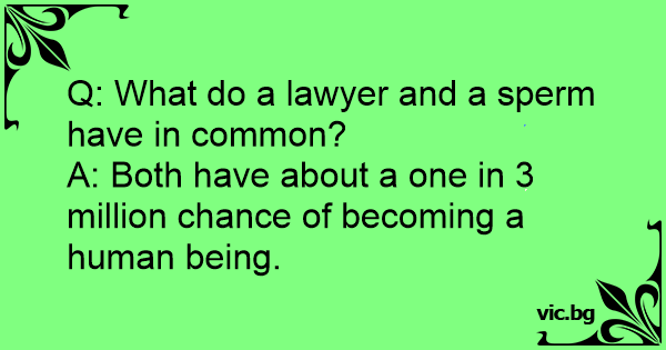 Каква е приликата между сперматозоидите и адвокатите? Един на милион има шанса да стане човек